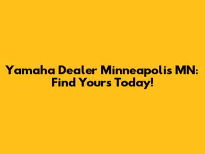 Yamaha Dealer Minneapolis MN: Find Yours Today!