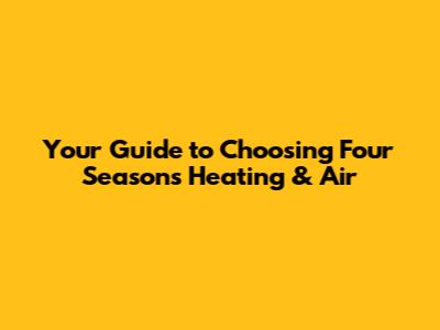 Four Seasons Heating & Air is a well-known name in the HVAC industry, offering a range of products and services to meet various needs. What exactly does Four Seasons Heating & Air offer? Typically, you'll find a variety of systems including central air conditioners, furnaces, heat pumps, and ductless mini-split systems. They often provide services such as installation, repair, and maintenance. When evaluating Four Seasons Heating & Air, consider the following: Product Quality: Research the quality and reliability of their systems. Look for customer reviews and ratings to get an idea of other people's experiences. Energy Efficiency: Check the SEER and HSPF ratings of their systems to ensure they meet your energy efficiency goals. Features and Technology: Explore the features and technology offered by their systems. Do they have smart thermostats, advanced filtration systems, or other innovative features? Warranty: Review the warranty offered by Four Seasons Heating & Air. A good warranty can provide peace of mind and protect you from unexpected repair costs. Customer Service: Evaluate the quality of their customer service. Are they responsive, helpful, and knowledgeable? Installation Services: Ensure that they offer professional installation services. Proper installation is crucial for the performance and longevity of your system. Maintenance Services: Check if they offer maintenance services to keep your system running smoothly. Price: Compare the prices of Four Seasons Heating & Air systems with those of other brands. Don't just focus on the initial purchase price; consider the long-term costs of ownership. Financing Options: See if they offer financing options to make it easier to afford a new system. Special Offers: Look for any special offers or rebates that may be available. Reviews and Testimonials: Read reviews and testimonials from other customers to get an idea of their overall satisfaction. Reputation: Research the company's reputation in the industry. Are they known for their quality products and services? Experience: Find out how long they have been in business. A company with a long history is more likely to be reliable and experienced. Certifications: Check if they have any certifications from industry organizations. These certifications demonstrate their commitment to quality and professionalism. Location: Consider their location and service area. Make sure they serve your area and can provide timely service. Emergency Services: See if they offer emergency repair services in case of breakdowns. Insurance: Verify that they are properly licensed and insured to protect you from liability. Custom Solutions: Inquire if they offer custom solutions to meet your specific needs and preferences. Eco-Friendly Options: Ask about eco-friendly options that can reduce your environmental impact. Noise Levels: Check the noise levels of their systems to ensure they won't disrupt your peace and quiet.