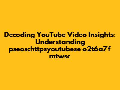 YouTube Video Insights: Decoding Pseoschttpsyoutubese O2t6a7f Mtwsc